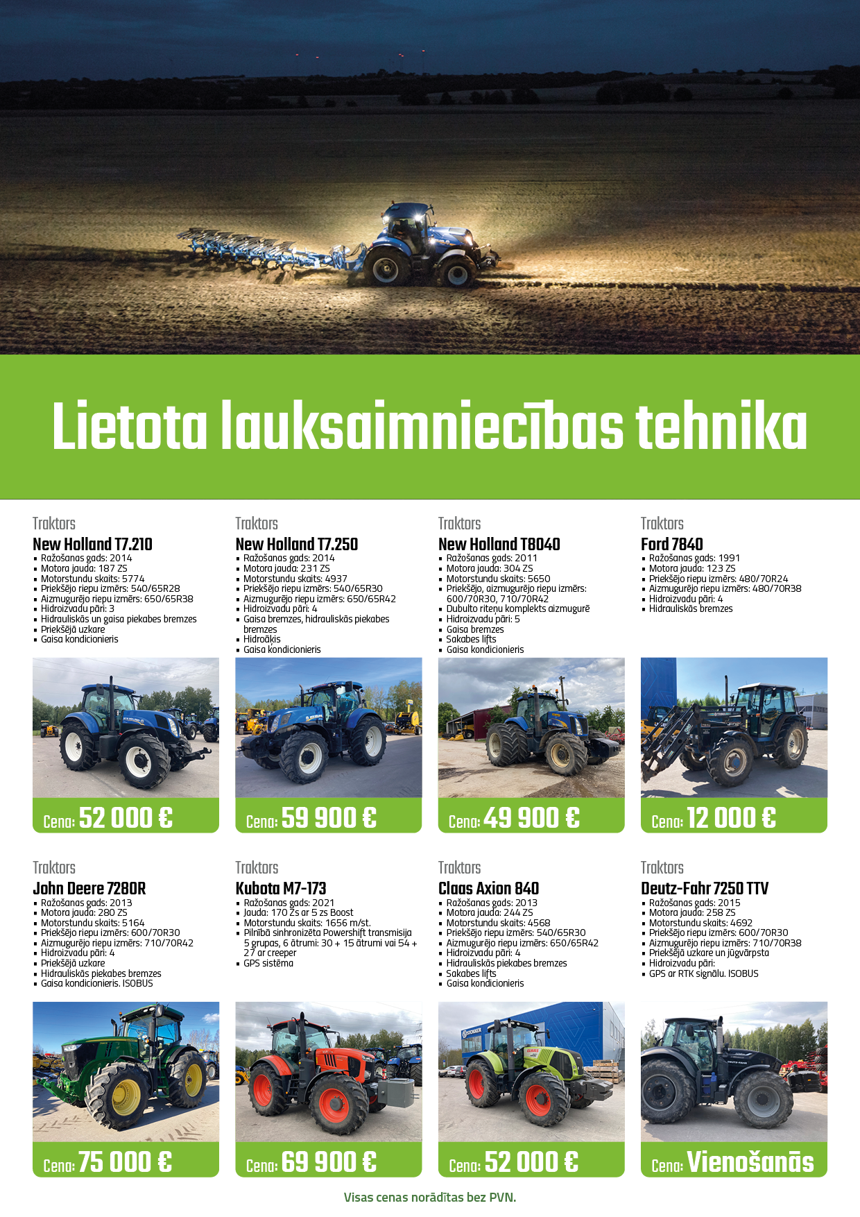 VISAS CENAS NORĀDĪTAS BEZ PVN.