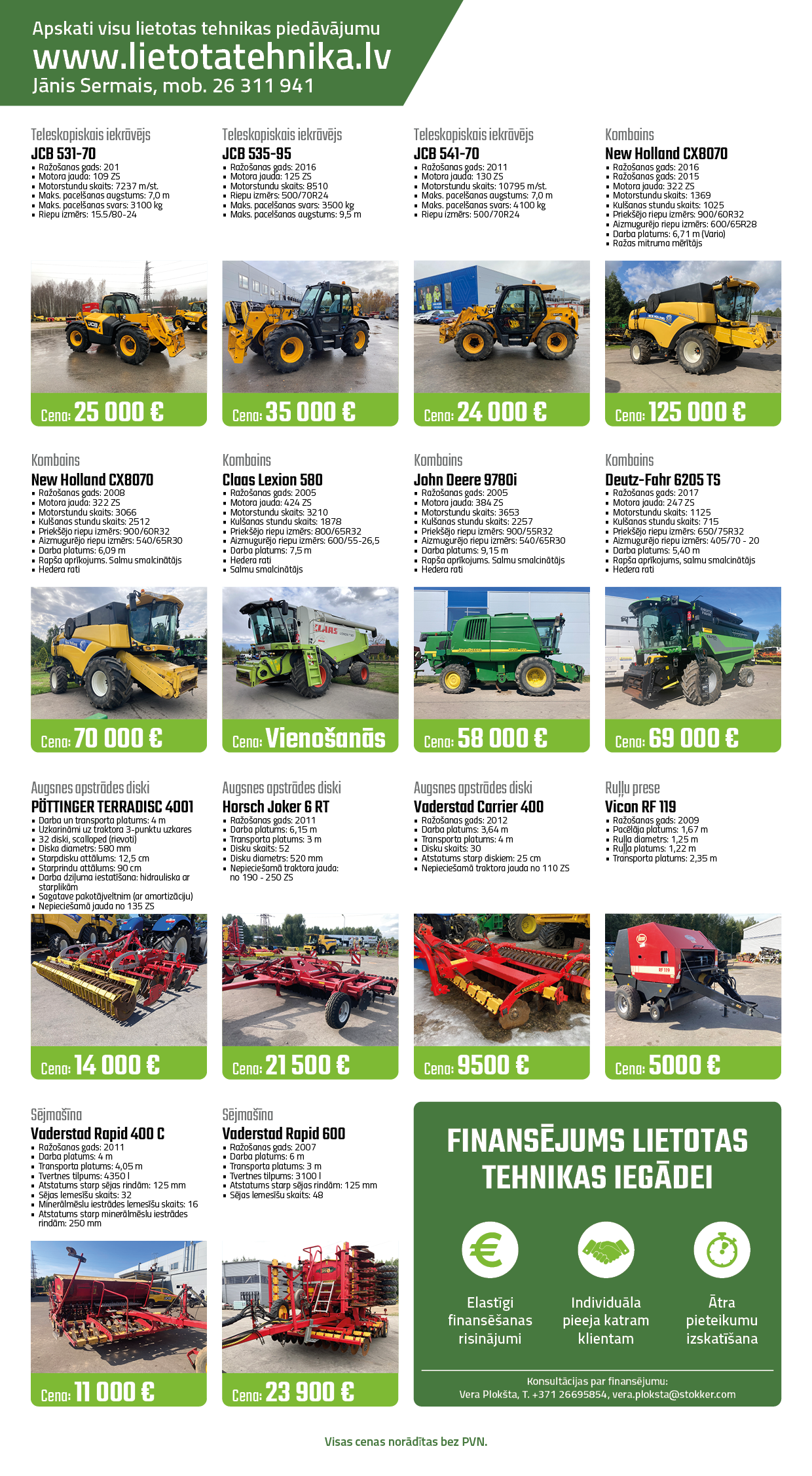 Lietotas tehnikas tirdzniecības pārstāvis Jānis Sermais, T. +371 26311941, e-pasts: janis.sermais@stokker.com