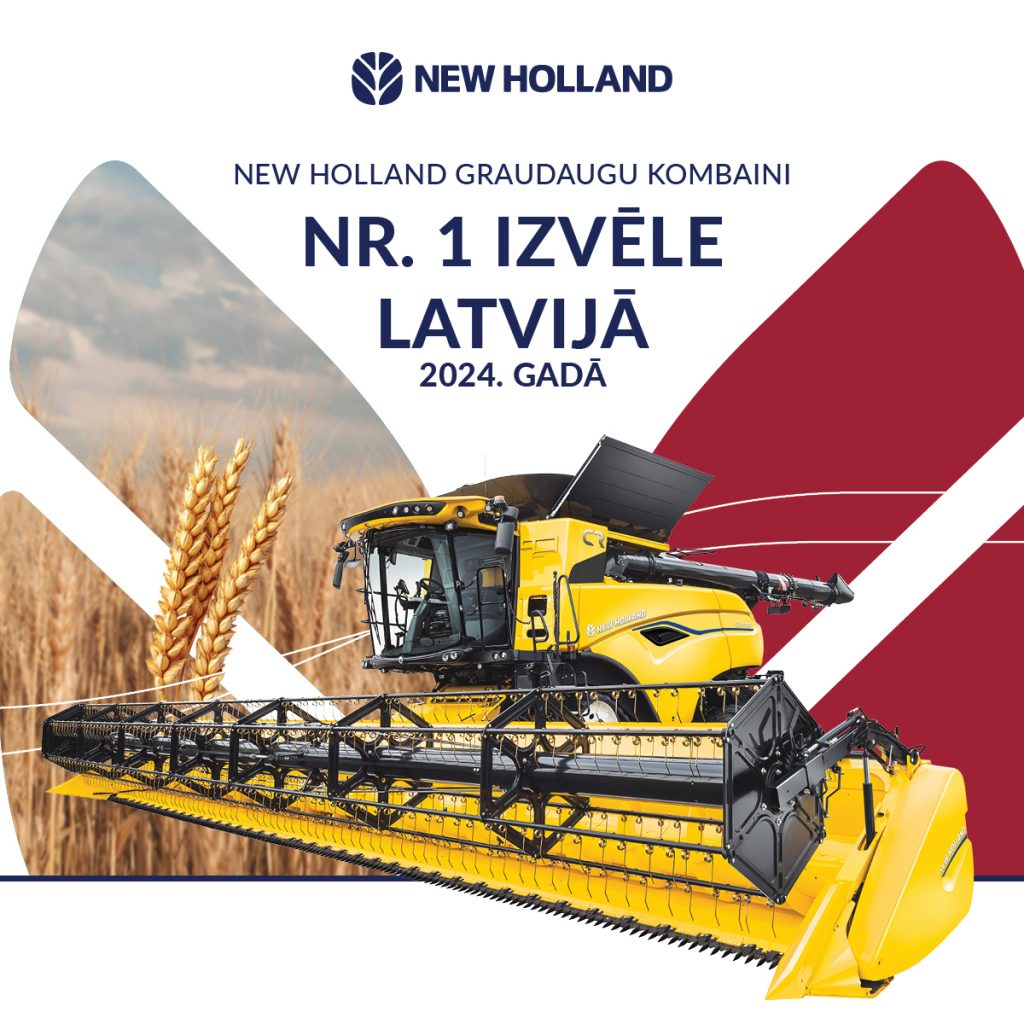 2024. gadā sasniegtais rezultāts apliecina jūsu uzticību New Holland zīmola tehnikai. Saskaņā ar Valsts tehniskās uzraudzības aģentūras datiem, New Holland ir tirgus līderis ar 24 pārdotiem jauniem graudaugu kombainiem.