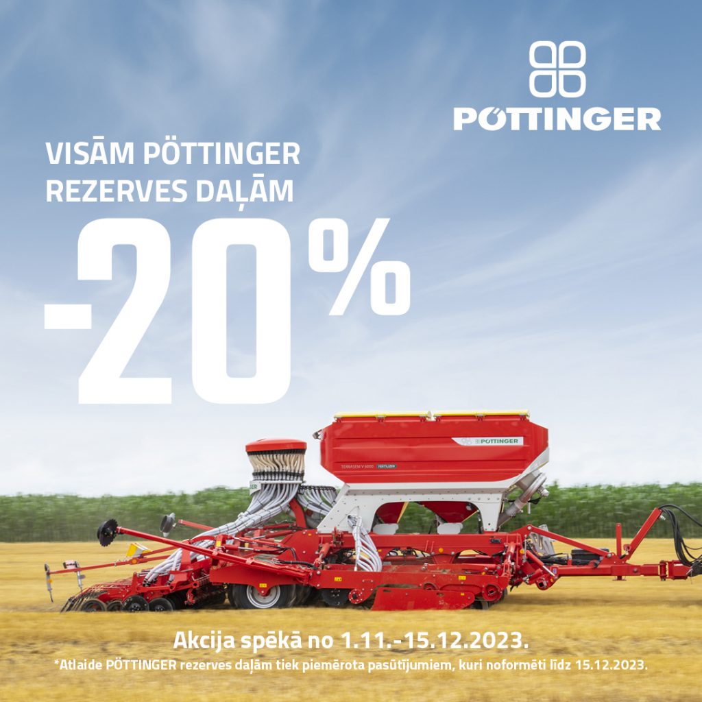 20% ATLAIDE VISĀM PÖTTINGER REZERVES DAĻĀM, VEICOT PASŪTĪJUMU LĪDZ 15.12.2023.