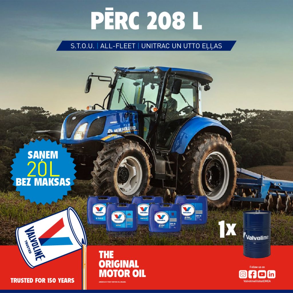 Iegādājoties Valvoline traktortehnikas eļļas mucu 208 l, saņem 20 l kannu dāvanā!