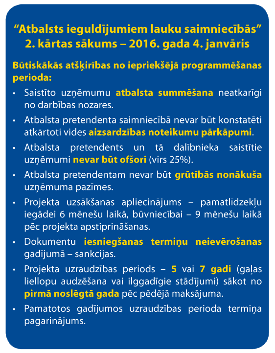 Izmaiņas komentē Lauris Vēveris – “Nordea Finance Latvia” Iekārtu līzinga darījumu vadītājs. Šajā rudenī ir būtiski mainījušies MK noteikumi par ES atbalsta piešķiršanu, administrēšanu un uzraudzību lauku un zivsaimniecības attīstībai 2014. – 2020.gada plānošanas periodā, kas tieši skar klienta izvēlētās tehnikas finansēšanas iespējas finanšu līzingā. Arī turpmāk klientiem būs iespēja tehniku iegādāties finanšu līzingā, bet šādā gadījumā ir jārēķinās ar divām būtiskām izmaiņām. Pirmkārt, atbalsta maksājumi klientam tiks izmaksāti reizi ceturksnī no klienta faktiski veiktajiem maksājumiem līzinga sabiedrībai. Otrkārt, projekts tiks uzskatīts par pilnībā pabeigtu jeb uzraudzības periods 5 gadi sāksies no brīža, kad klients būs pilnībā izmaksājis līzinga sabiedrībai līzinga objekta vērtību, nokārtojis visas līzinga līgumā noteiktās saistības un iegādātā prece kļuvusi par klienta īpašumu.