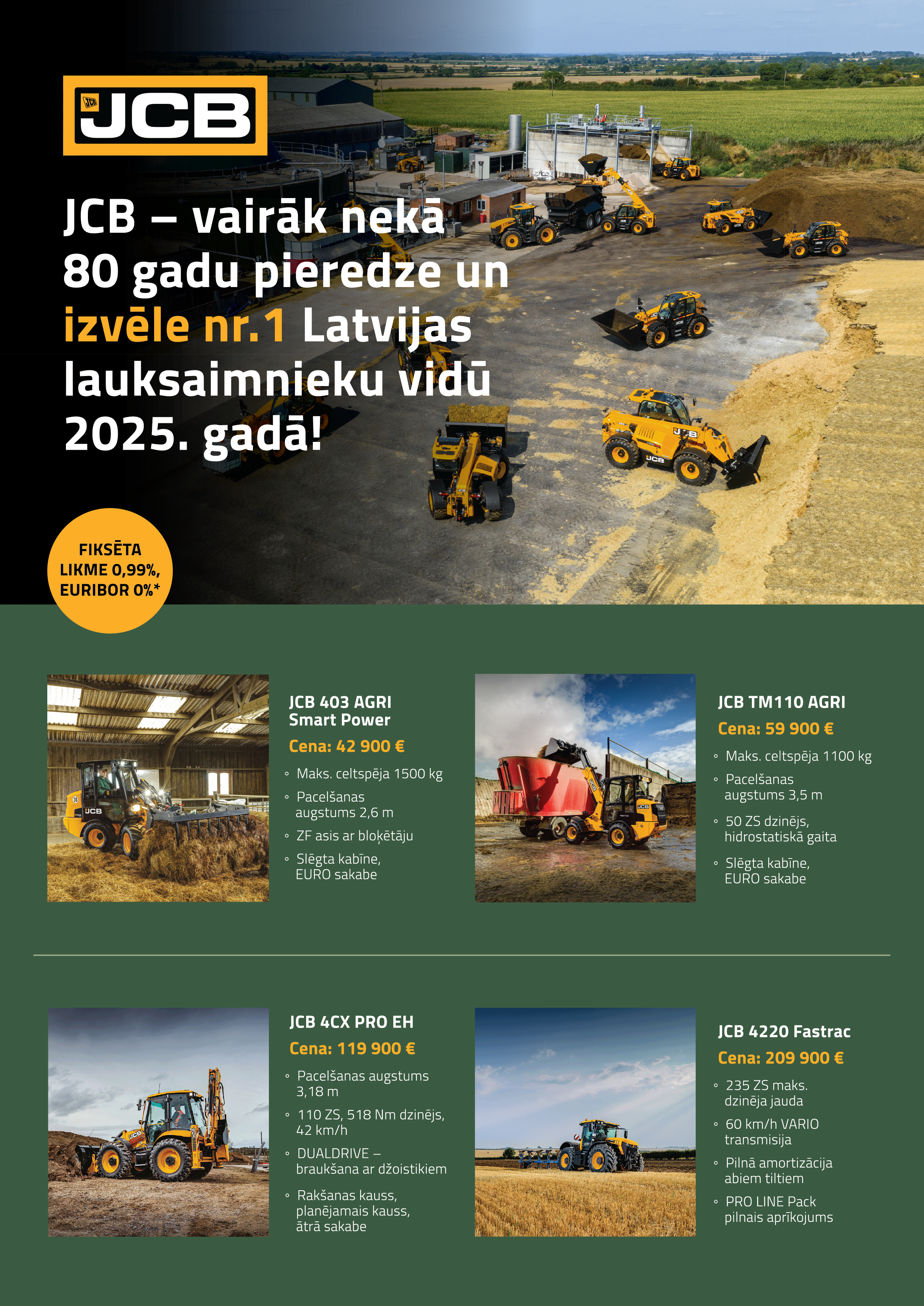 Iegādājies JCB tehniku par izdevīgām cenām un šobrīd arī izdevīgs finansējuma piedāvājums no JCB Finance! Īpašās cenas spēkā līdz 31.07.2026.