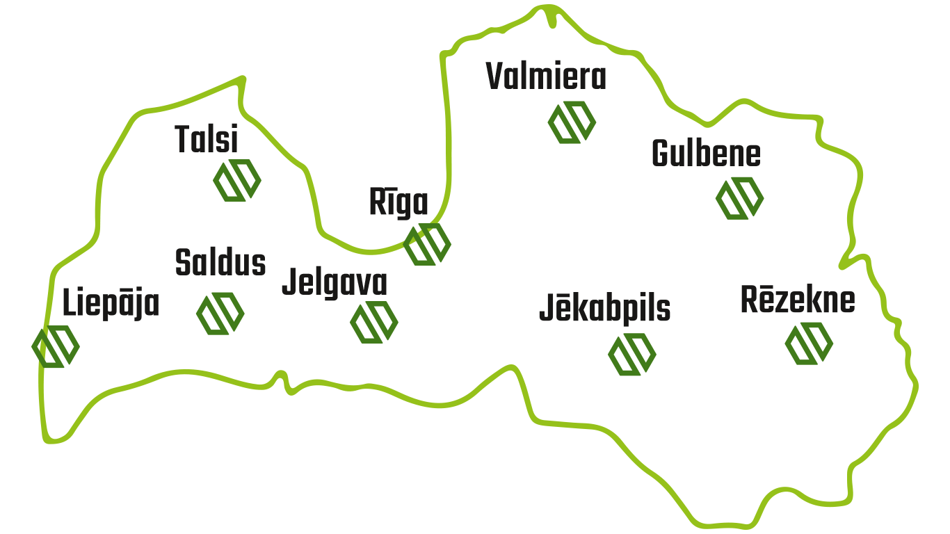 - Operatīvi nodrošinām kvalitatīvus servisa pakalpojumus visos Latvijas reģionos.