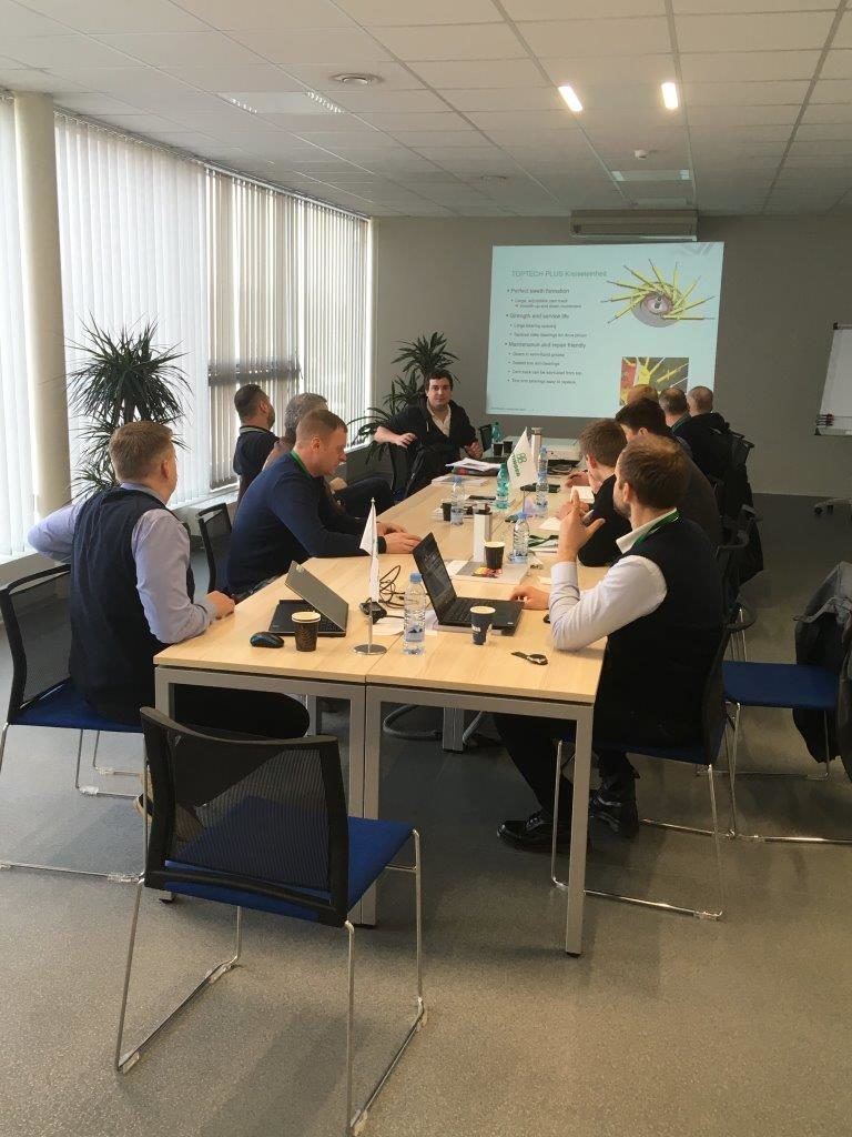 No 19.-20. februārim Jelgavā norisinājās 2 dienu PÖTTINGER mācības uzņēmumiem no Latvijas, Igaunijas un Lietuvas. Mācības vadīja PÖTTINGER rūpnīcu pārstāvji – Norbert Lindorfer, Christoph Mauhart, Paul Wilson un Christoph Stüblreiter. Divu dienu laikā atsevišķās darba grupās, servisa un pārdošanas, tika apgūti jaunākie PÖTTINGER augsnes un zāles apstrādes agregāti. Servisa darba grupā tika iegūtas padziļinātas tehniskās zināšanas par agregātiem, to uzbūvi un problēmu novēršanu, to iespējamo cēloņu noteikšana. Savukārt pārdošanas grupās tika apskatītas agregātu tehnoloģijas, efektīvākie risinājumi augsnes un zāles apstrādē, to priekšrocības un ieguvumi šos produktus iegādājoties. Šīs mācības bija lieliska iespēja mācīties un padziļināti apgūt PÖTTINGER produktus, lai klientiem sniegtu vērtīgus padomus, kā strādāt efektīvāk un ekonomiskāk, bet sasniedzot lieliskus rezultātus!