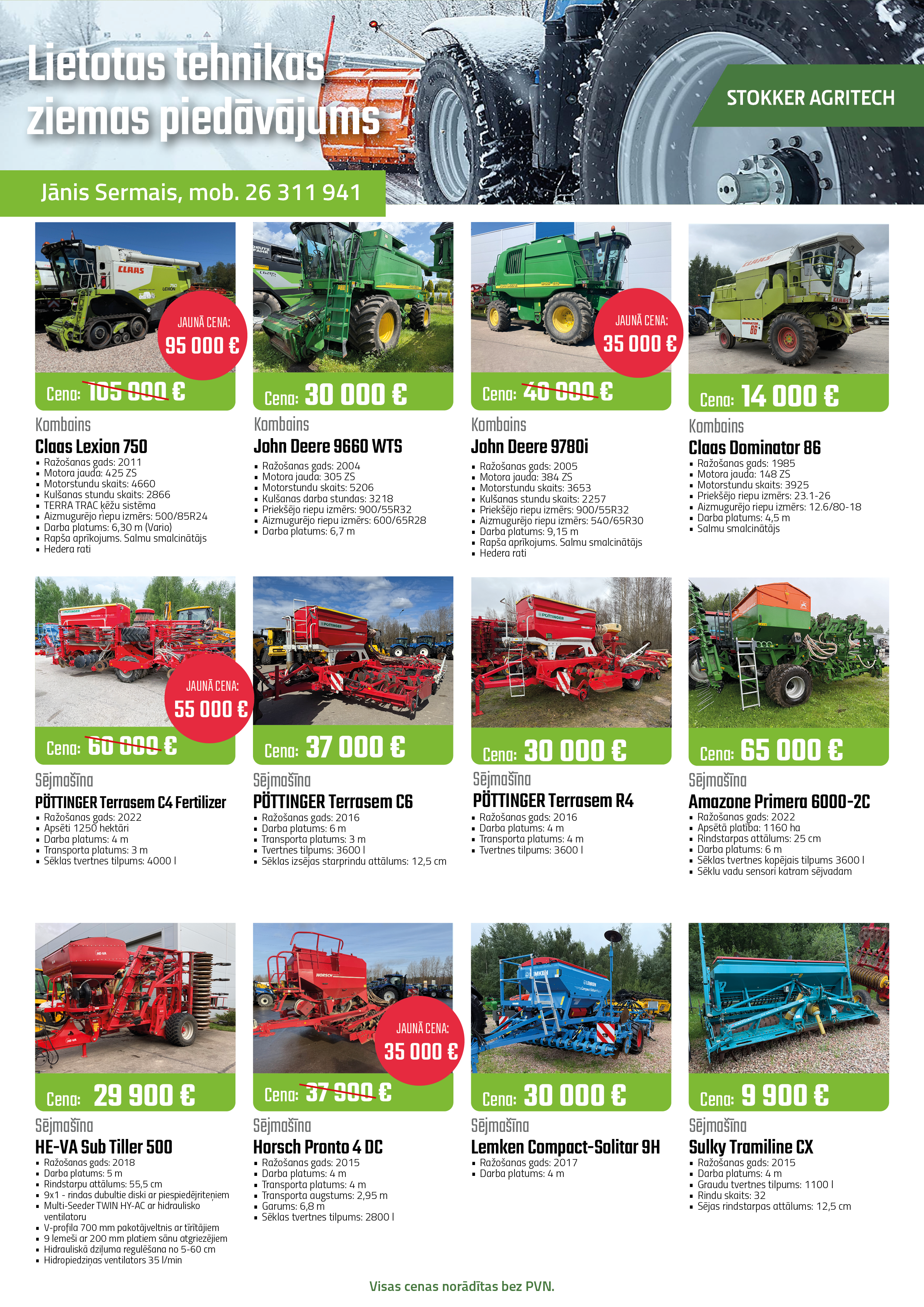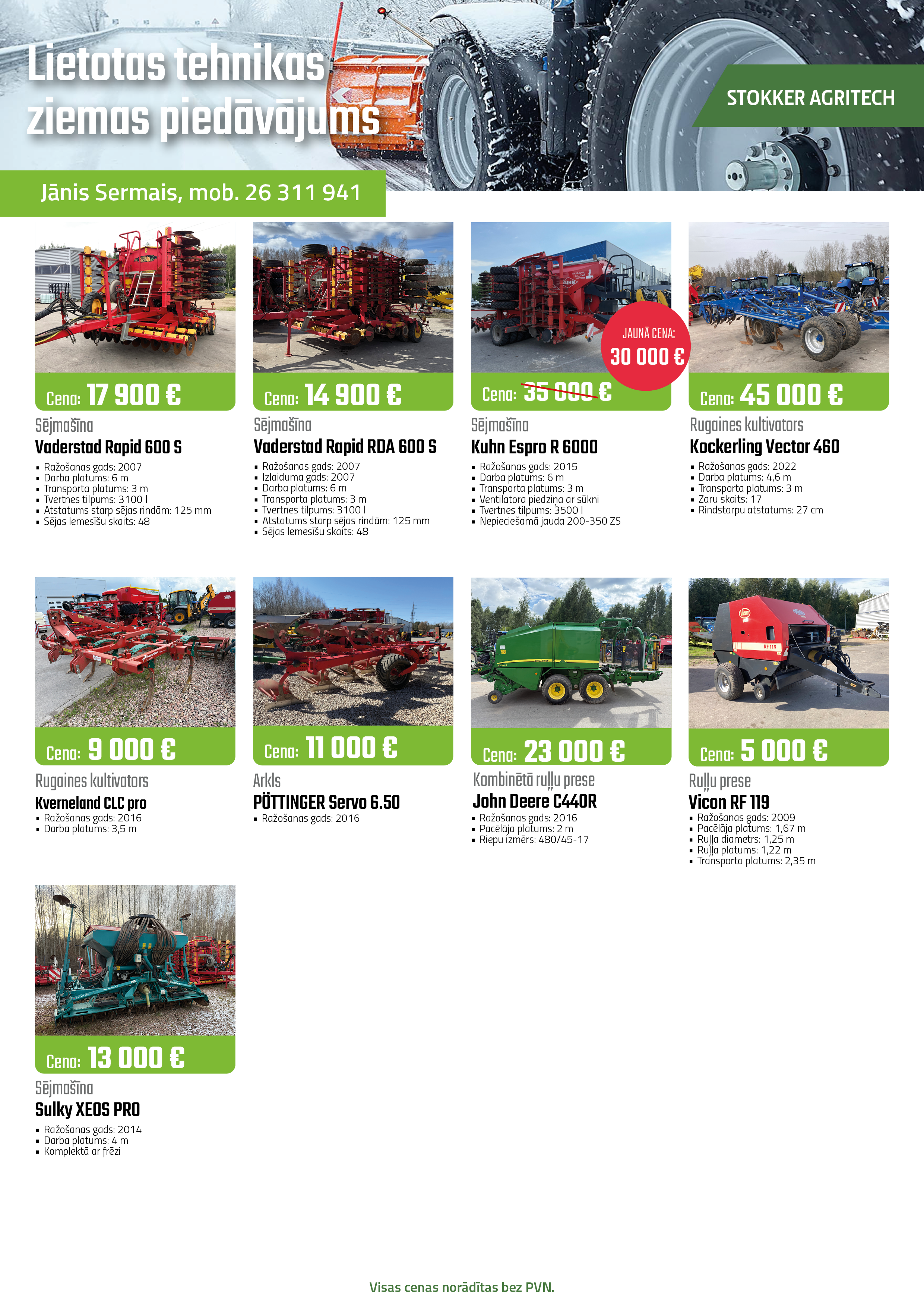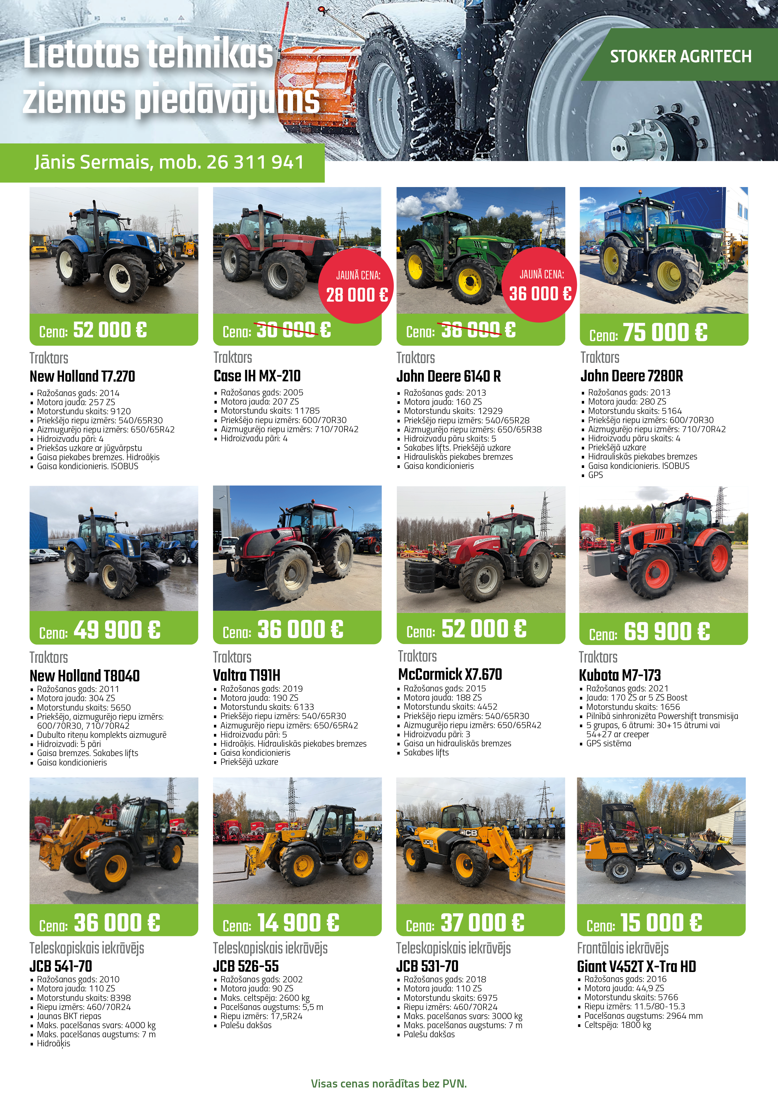 Lietotas tehnikas tirdzniecības pārstāvis Jānis Sermais, tālr. nr. +371 26 311 941, e-pasts: janis.sermais@stokker.com