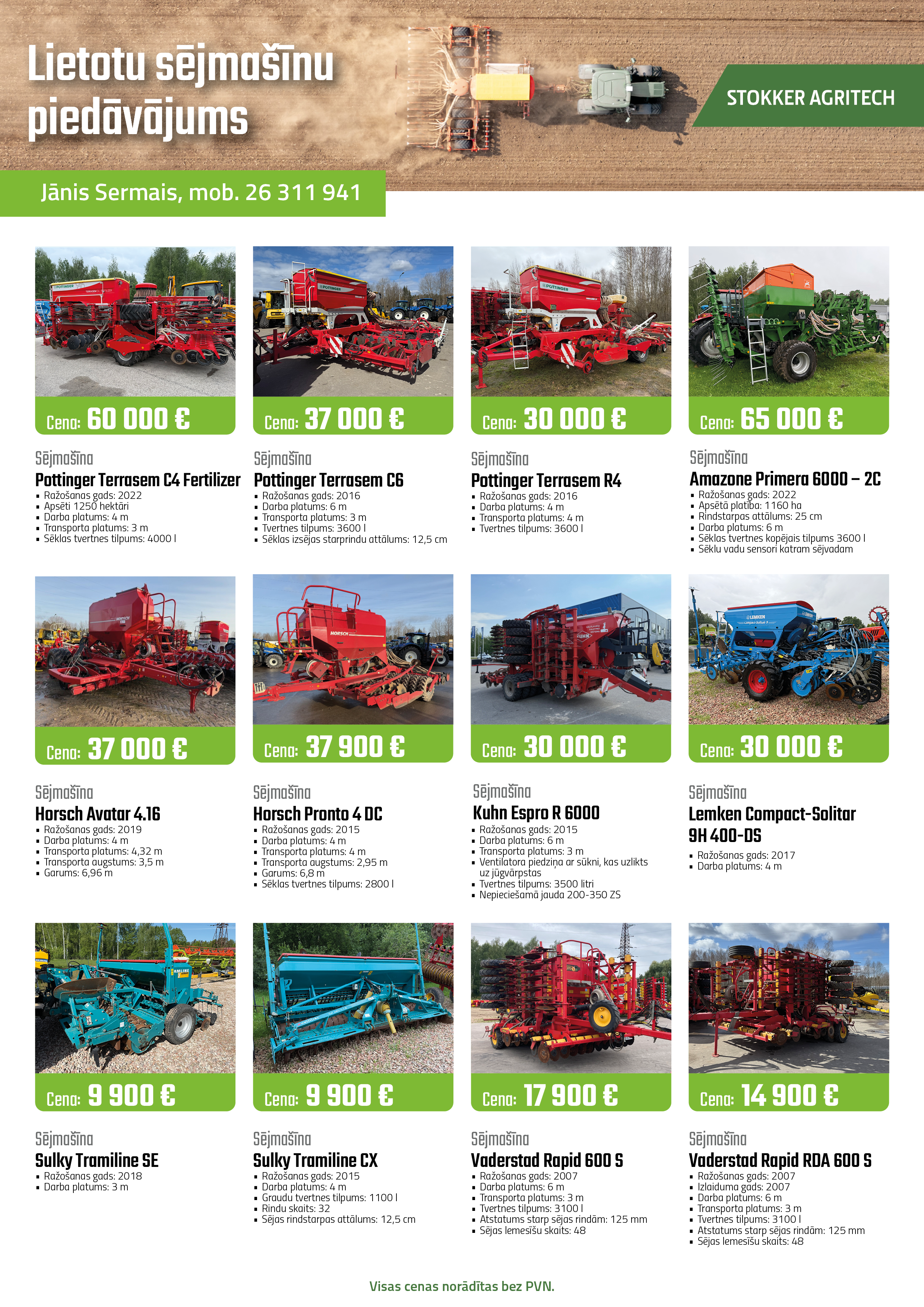 Lietotu sējmašīnu piedāvājums Aktuālais piedāvājums lietotām sējmašīnām. KONTAKTI:Jānis Sermais, T. 26311941, janis.sermais@stokker.com Categories: ziņas