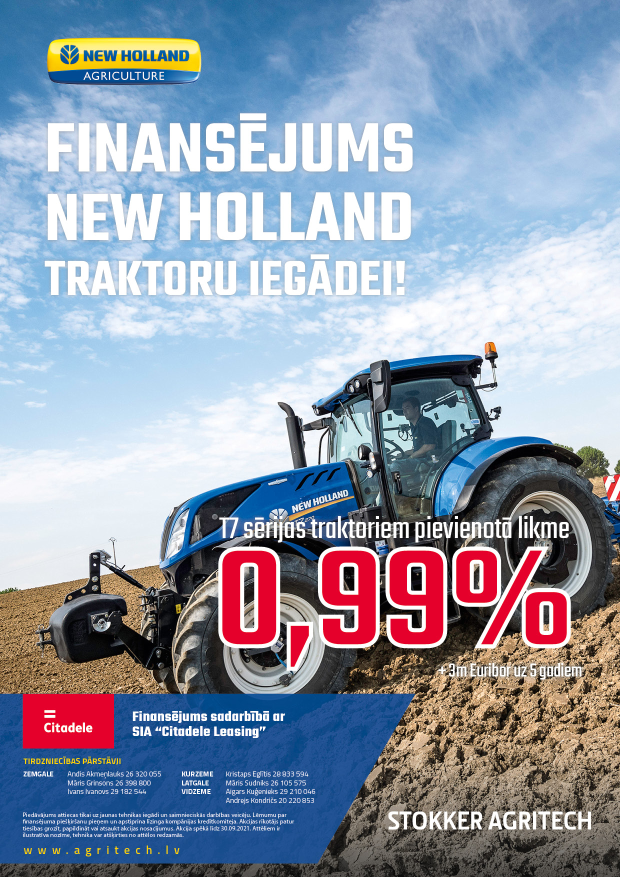FINANSĒJUMS NEW HOLLAND T7 TRAKTORU IEGĀDEI – LIKME 0.99%