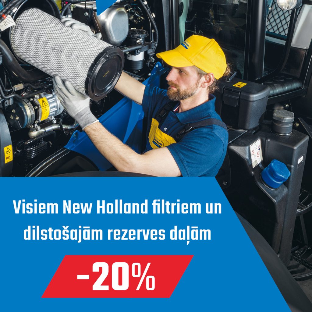 VISIEM NEW HOLLAND filtriem un dilstošajām rezerves daļām 20% atlaide.