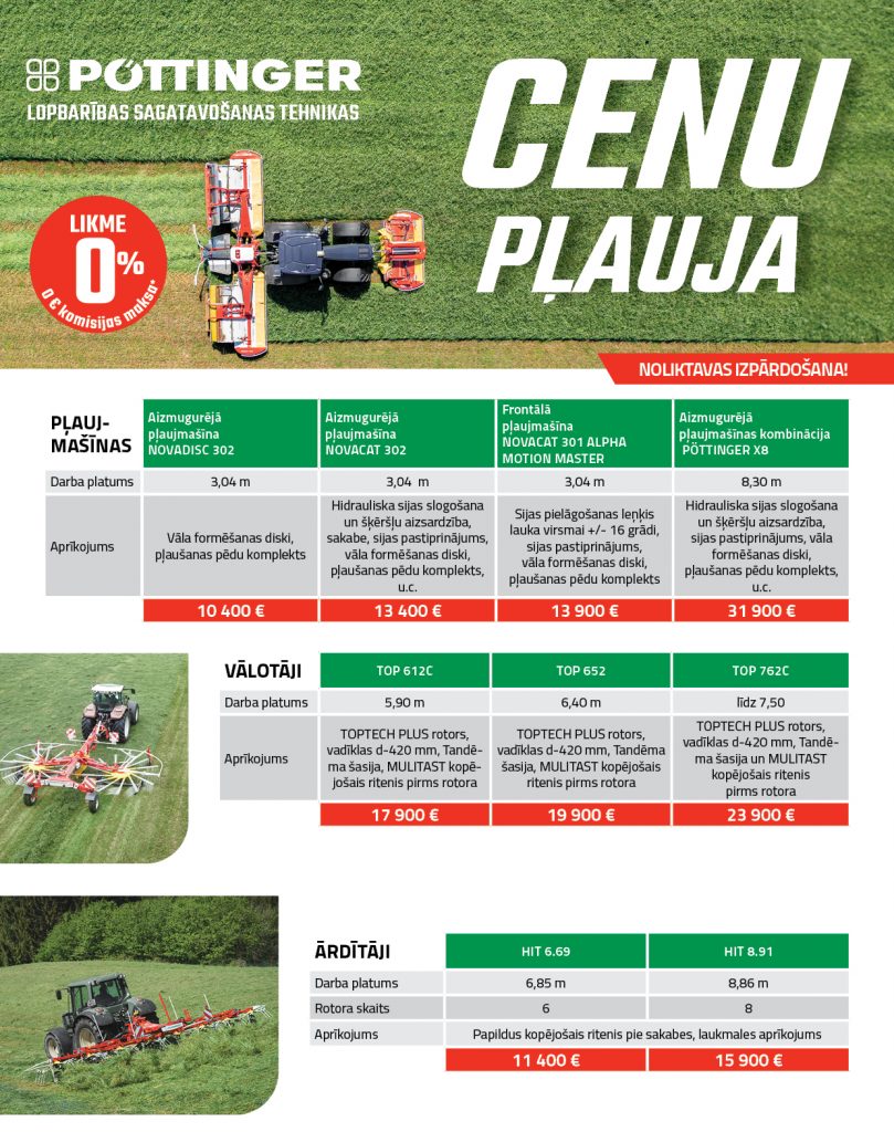 PÖTTINGER zāles lopbarības sagatavošanas tehnikai pievienotā likme 0% + 3 mēn. Euribor*
