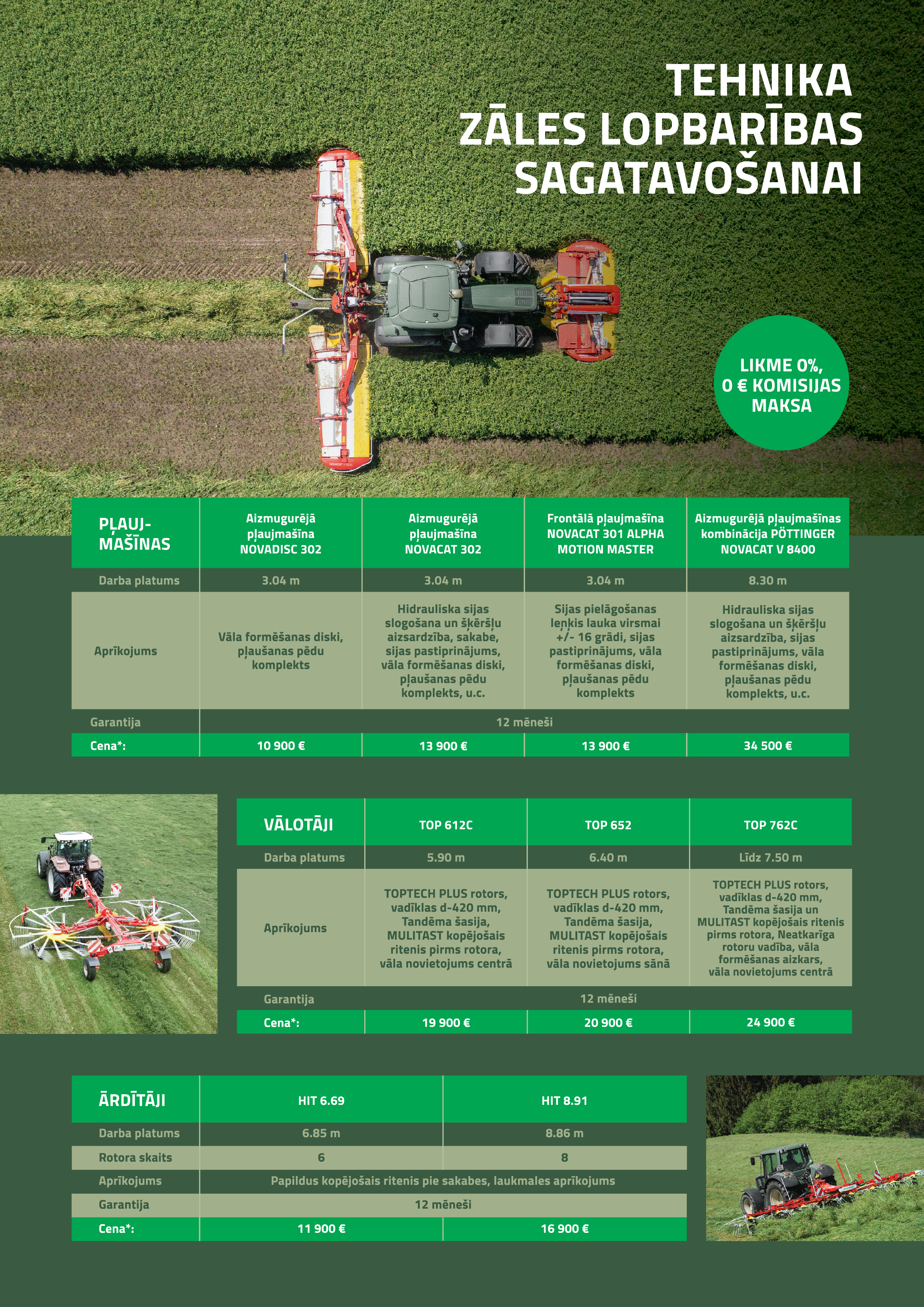 - PÖTTINGER zāles lopbarības sagatavošanas tehnikai pievienotā likme 0% + 6 mēn. Euribor.