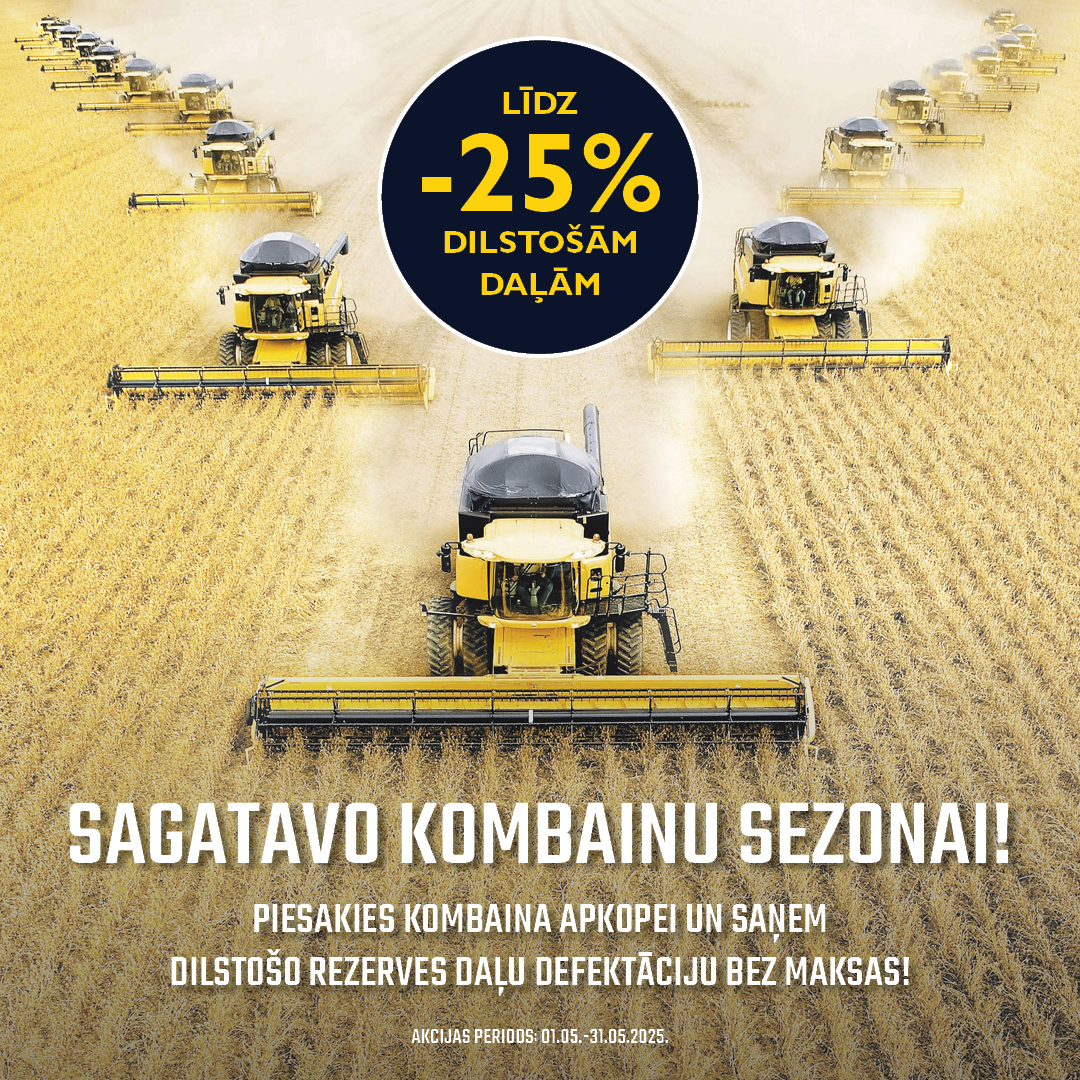 Piesaki kombainu apkopei un saņem dilstošo rezerves daļu defektāciju bez maksas! Dilstošām daļām atlaide līdz 25%! Akcijas periods: 01.05.-31.05.2025.