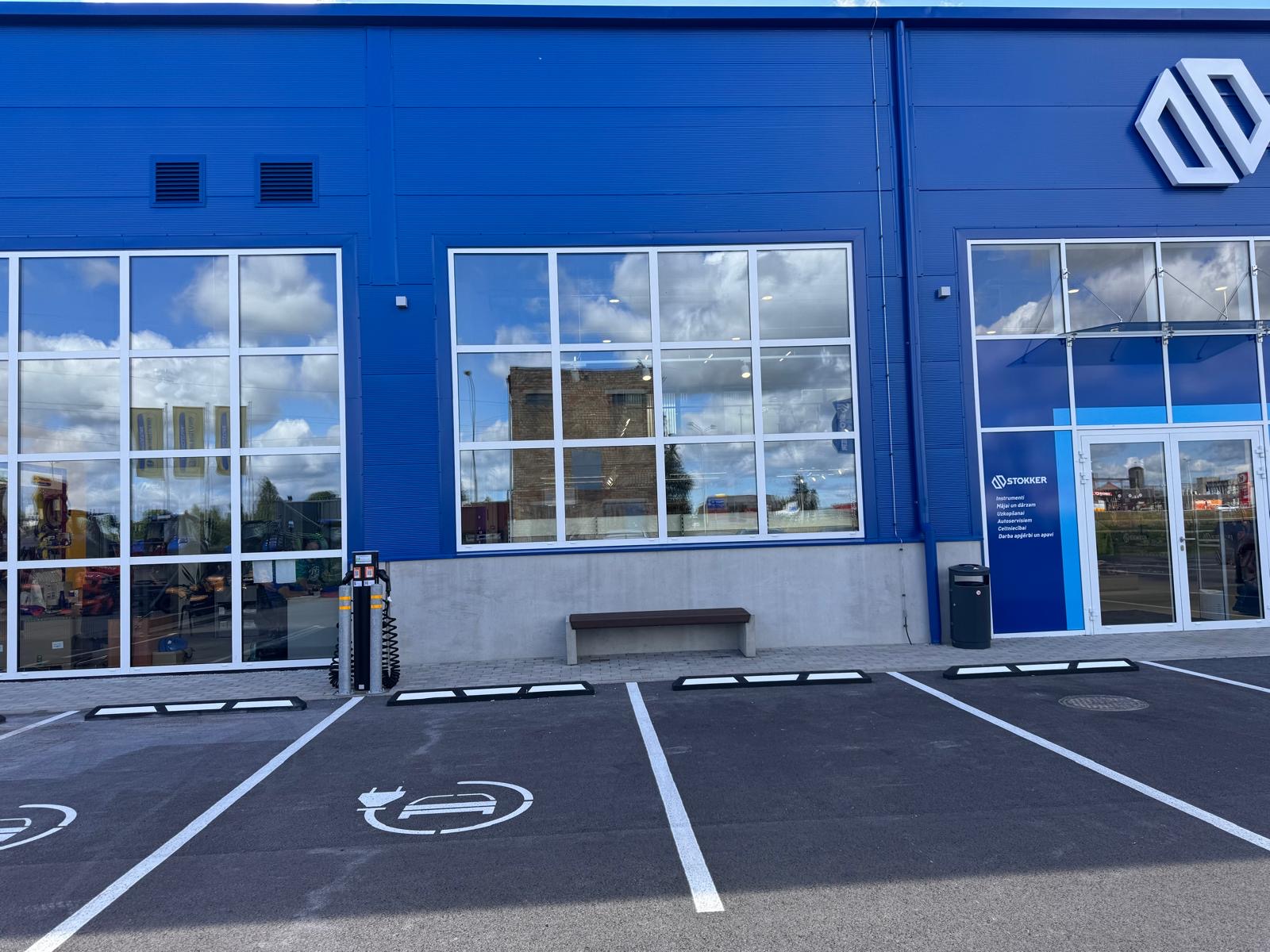 Šī energoefektivitātes paaugstināšanas projekta ietvaros jaunajā Saldus centrā ir izveidota arī elektroauto uzlādes stacija ar iespēju vienlaikus uzlādēt divus elektroautomobiļus. Šāda stacija jau darbojas arī Stokker centrā Jelgavā. Abas uzlādes stacijas ir pieejamas jebkuram elektroauto īpašniekam jebkurā diennakts laikā. Samaksāt par izmantoto elektroenerģiju var ar mobilās aplikācijas starpniecību, tomēr Stokker un Stokker Agritech klientiem ir īpaša priekšrocība – kamēr klients iepērkas vai izmanto servisa pakalpojumus, viņš var uzlādēt savu auto bez maksas.