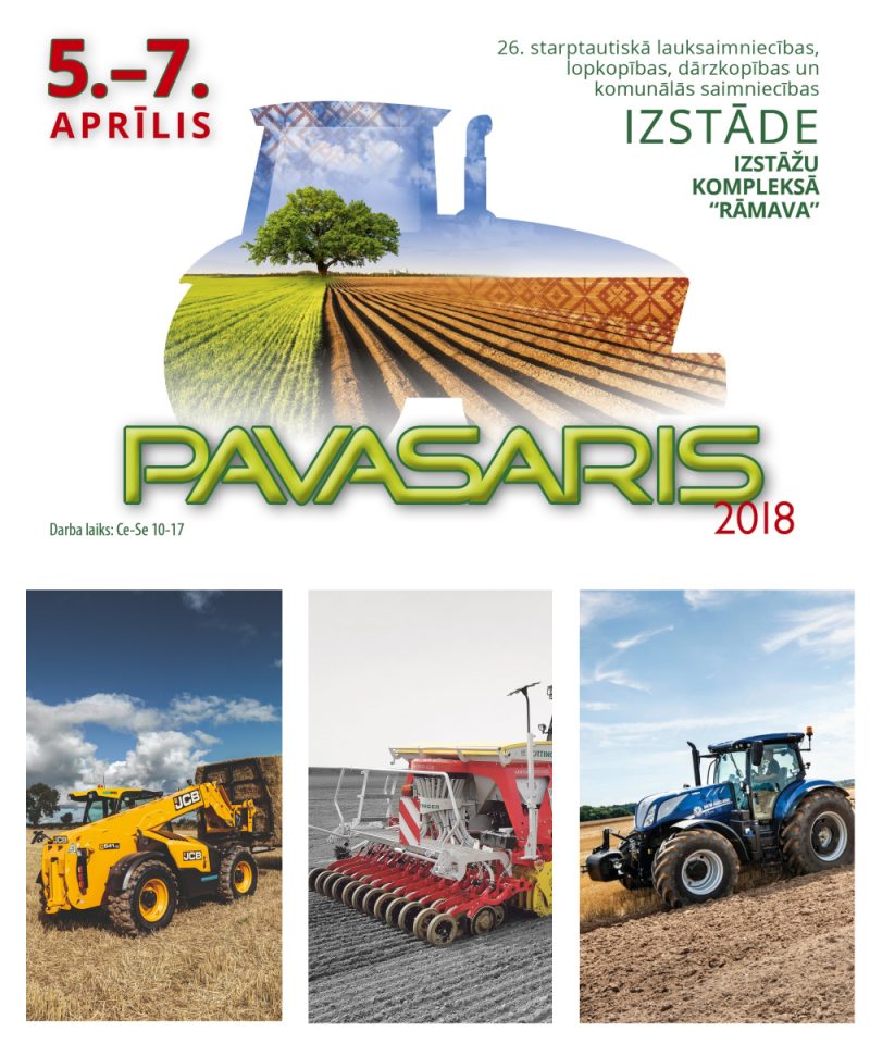 Pirms pavasara darbiem, tiekamies lauksaimniecības, lopkopības, dārzkopības un komunālās saimniecības izstādē “Pavasaris 2018”! Izstāde norisināsies 3 dienu garumā, no 5.-7.aprīlim, katru dienu no plkst. 10:00-17:00.