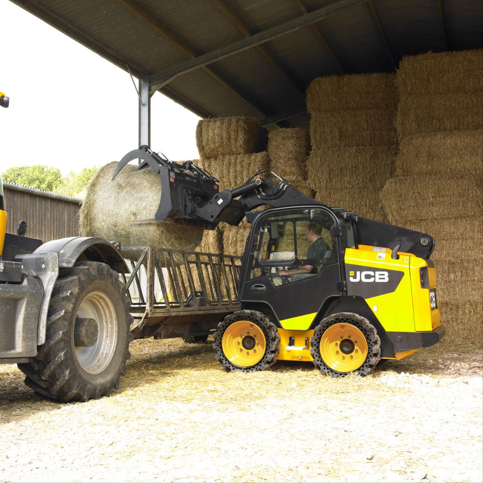 JCB kompaktais iekrāvējs ir universāls, ar izcilu manevrētspēju un redzamību.