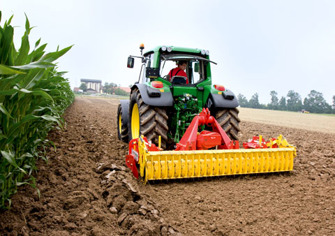 • Leņķī novietotie zari uzirdina augsni no apakšas, apstrādājot tikai augu atliekas, kas atrodas uz augsnes.