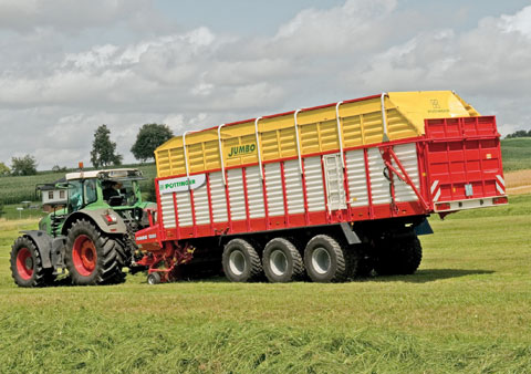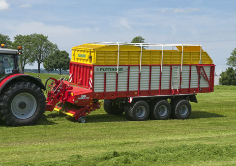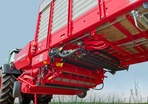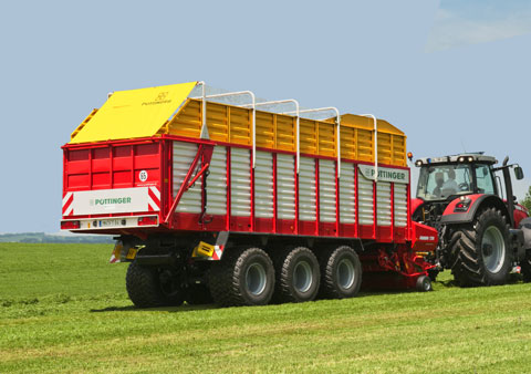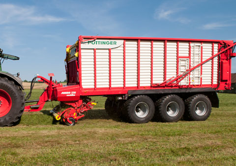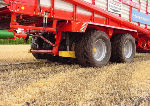 Tā kā piekabē lielā ātrumā tiek pārvietots liels svars, nepieciešama izturīga un augsni aizsargājoša šasija. Pöttinger ir veikuši uzlabojumus šajā jomā, izveidojot augstas kvalitātes stūrēšanas tandēma vai tridēma asis un riepas ar labāku saķeri.