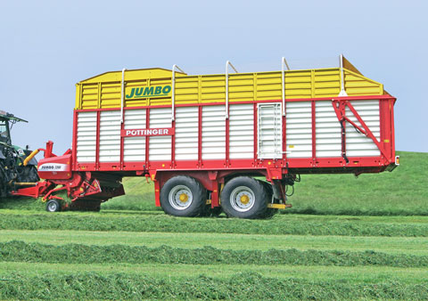 Vislabāko iekraušanas bunkura kompresiju panāk, izmantojot lielo tīrītāju virsmas laukumu un uzlaboto rotoru zaru ģeometriju. Pöttinger JUMBO nodrošina vislabāko veiktspēju un savākšanas blīvumu uz viena m3 arī ar mitru barību.