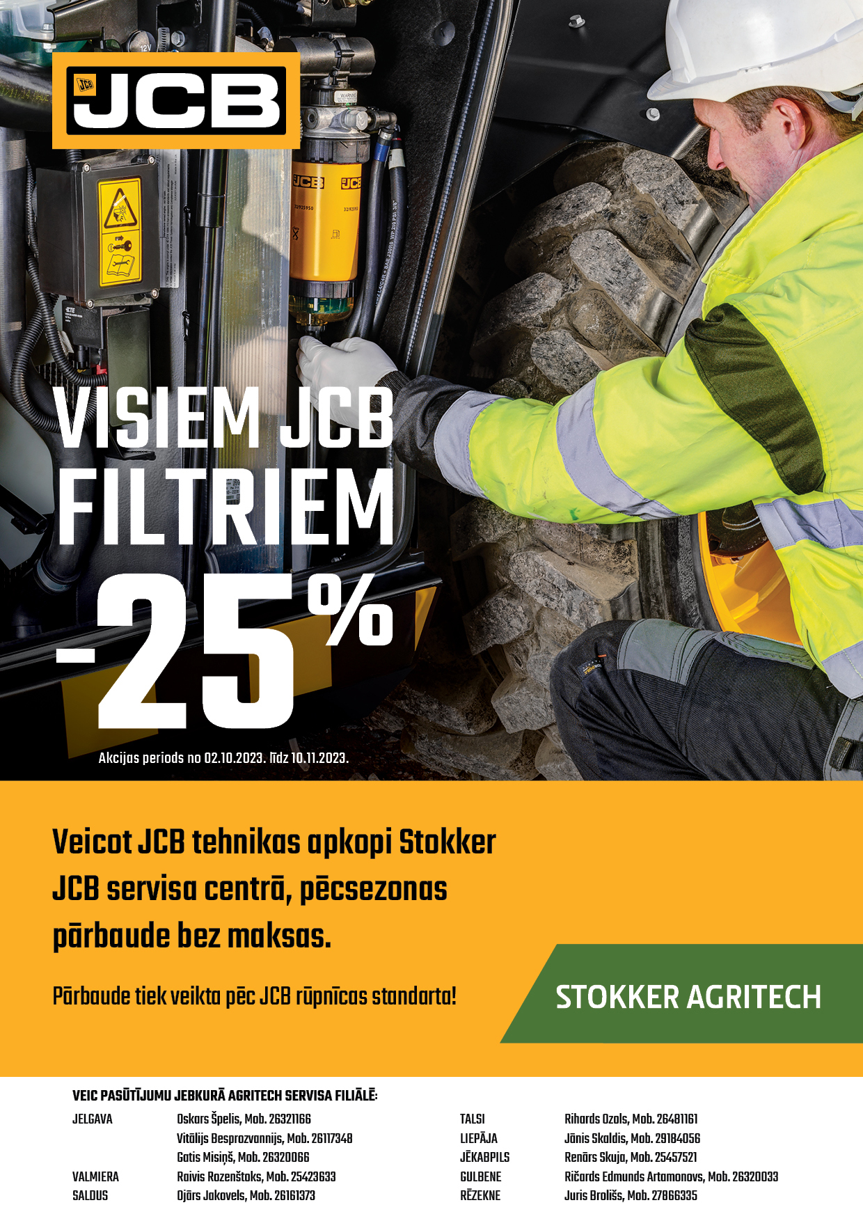 - Turklāt veicot JCB tehnikas apkopi Stokker Agritech filiālēs, pēcsezonas pārbaude BEZ MAKSAS! Pārbaude tiek veikta pēc JCB rūpnīcas standarta!